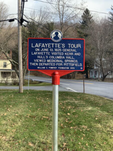 On June 13, 1825, General Lafayette visited Lebanon, NY where he took in New Lebanon Springs, known for their healing qualities. It was the last town in New York State he stopped prior to entering Massachusetts on his way to the Boston area, where he would lay the cornerstone of the Bunker Hill Monument on June 17, 1825.